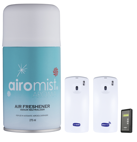 Airomist® Aroma fragrances get rid of unpleasant smells and odours. Airomist’s inbuilt odour neutraliser works away to eliminate malodours and provides rooms with clean fresh scents. Airomist Aroma is perfect for bathrooms, toilets, kitchens, garbage areas, cupboards, damp rooms, basements, gyms, pet areas, washrooms, locker rooms, hospitals.