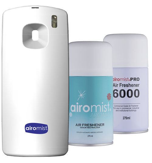 Airomist’s compact, contemporary design is ideal for all restroom, washrooms and communal areas. Airomist offers a wide range of fragrances and odour neutralizing refills that are carefully crafted the create a fresh, enhanced environment for staff and customers.